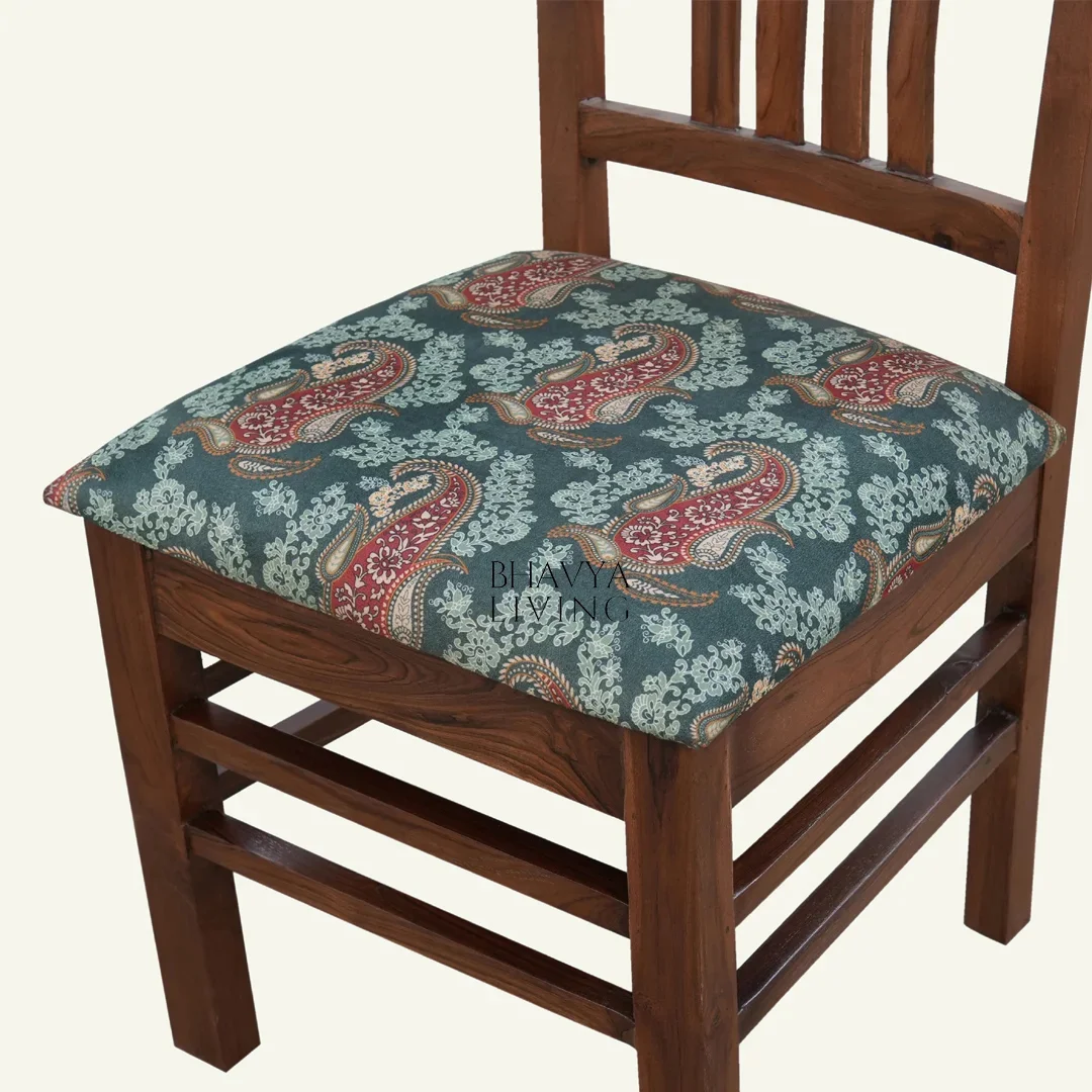 - Material: Â Teak Wood, Printed Upholstery